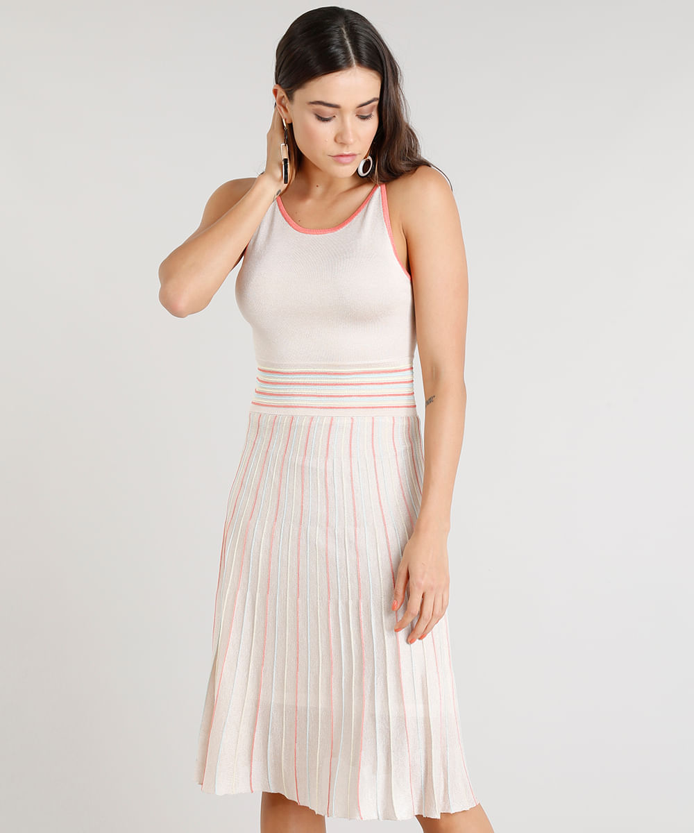 Vestido Feminino Midi Missoni em Tricô Estampado Chevron Bege | Body Feminino com Bojo Sem Manga Decote V Preto