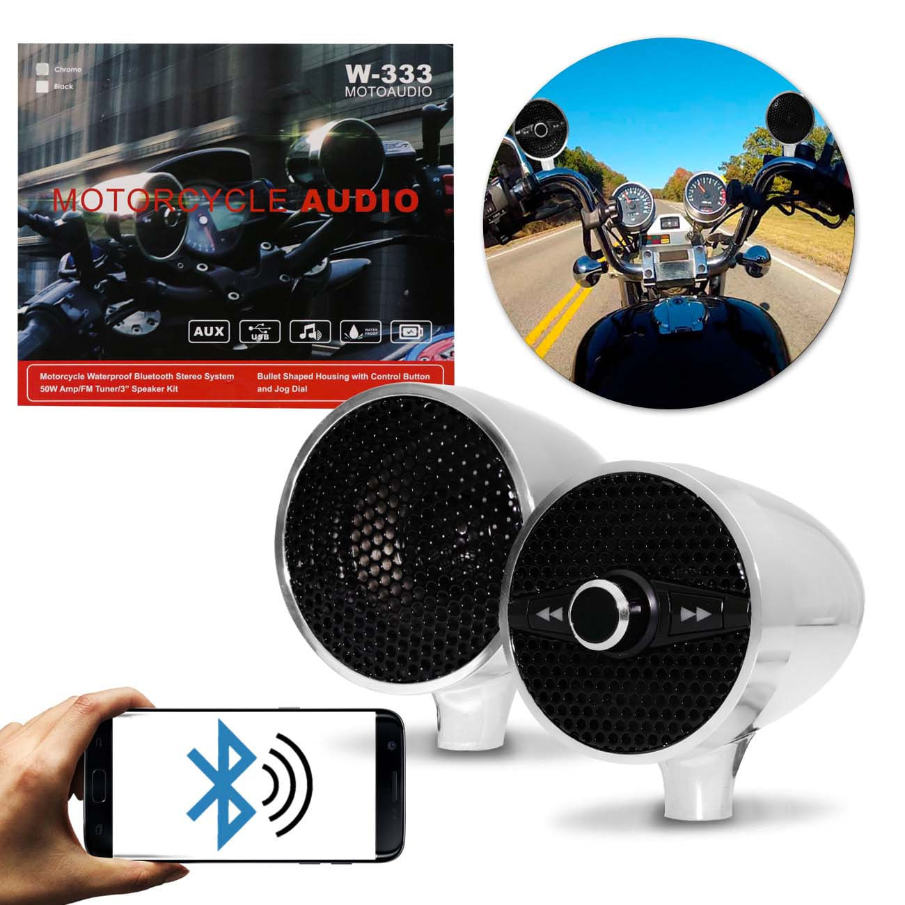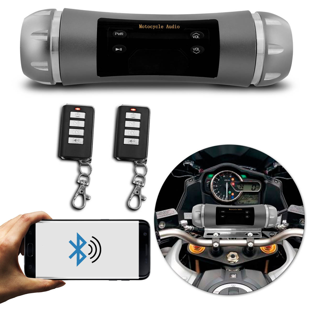 | Exclusivo: Caixa de Som Bluetooth para Moto Universal MicroSD USB Auxiliar Rádio |