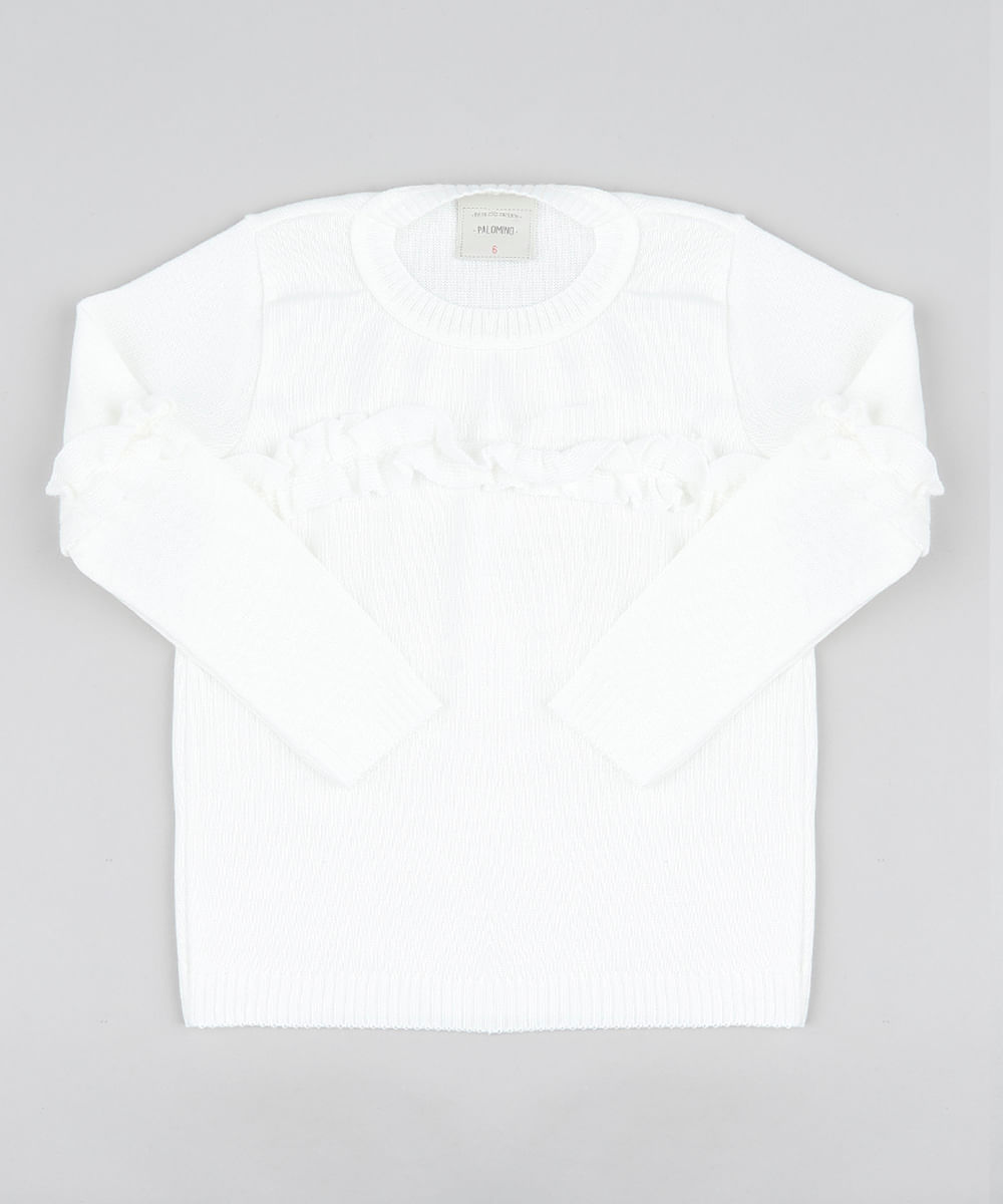 Suéter Infantil em Tricô com Babados Manga Longa Off White
