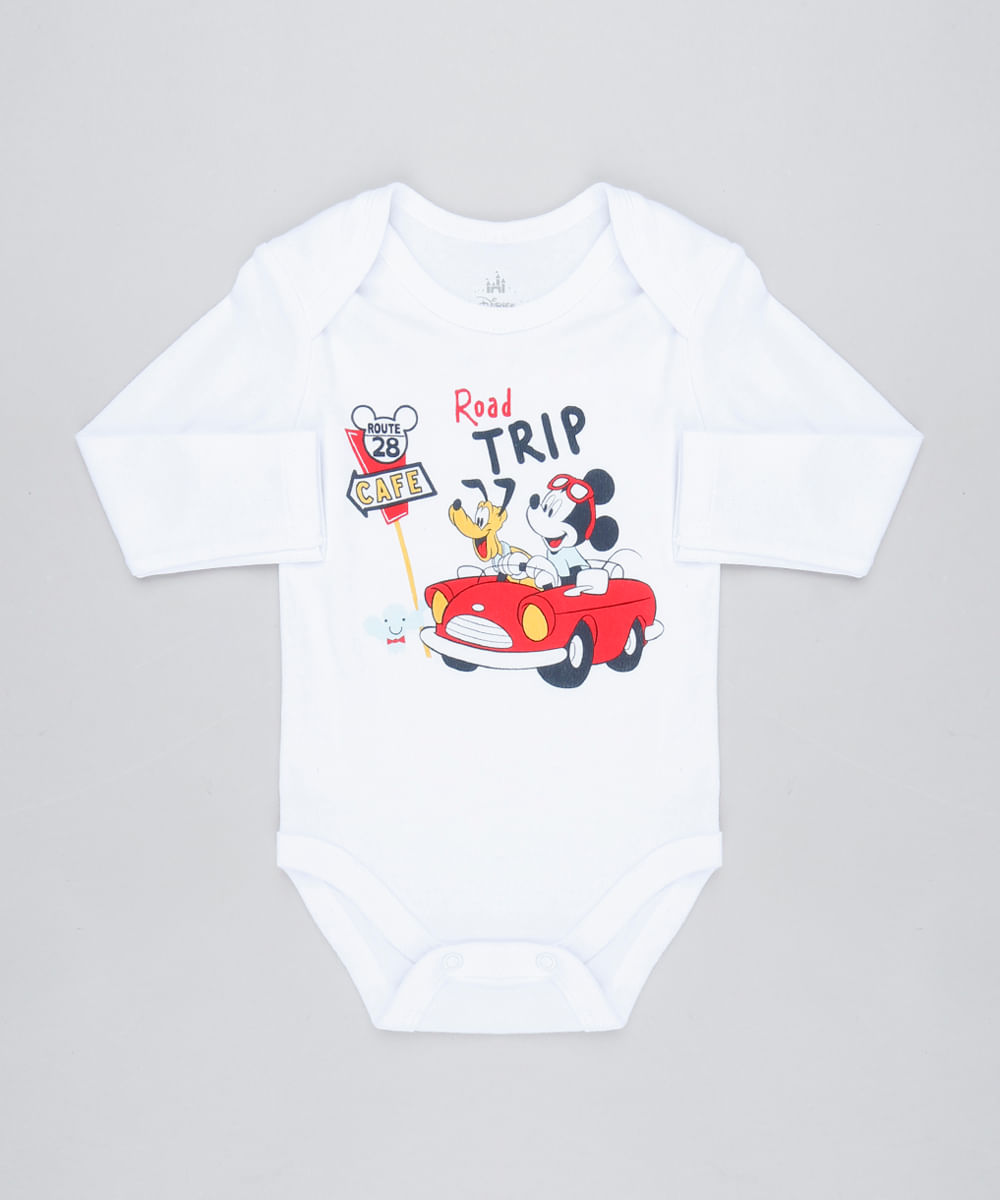 Camiseta Infantil com Bolso Manga Curta Mostarda | Body Infantil Mickey e Pluto Manga Longa Decote Redondo Branco
